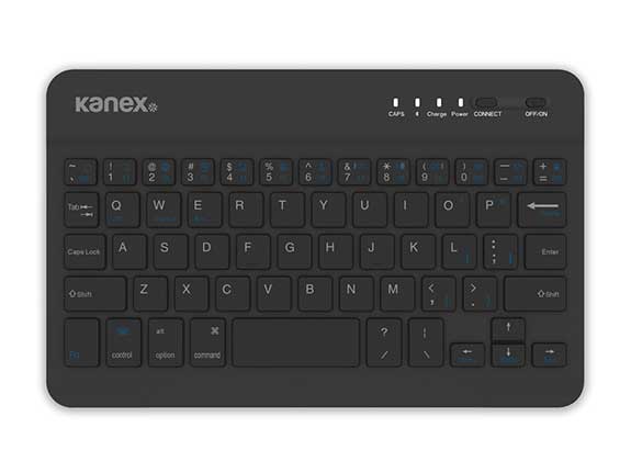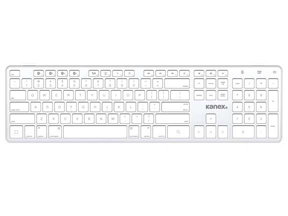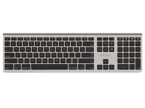 Wireless technology with premium aluminum design. Comfortable typing, and quiet keys encourage a low profile arrangement that is congruent with your existing Apple ecosystem. Kanex Bluetooth® MultiSync technology make it easy for simple one-touch switching between four devices.